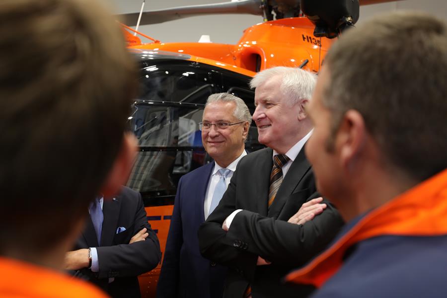 Aus den Händen von Bundesinnenminister Horst Seehofer nahm heute in Traunstein der Bayerische Staatsminister des Innern und für Integration, Joachim Herrmann im Beisein von BRK-Präsident Theo Zellner den ersten Zivilschutz-Hubschrauber (ZSH) der neuen Generation entgegen.
